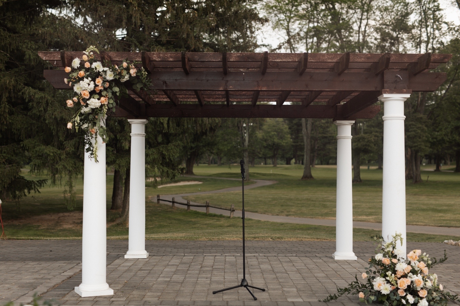 The weather could not have been more perfect that day, allowing for a seamless outdoor ceremony. The ceremony space was accented with soft blooms, creating a romantic, effortless feel that complemented the natural surroundings of the Pergola.